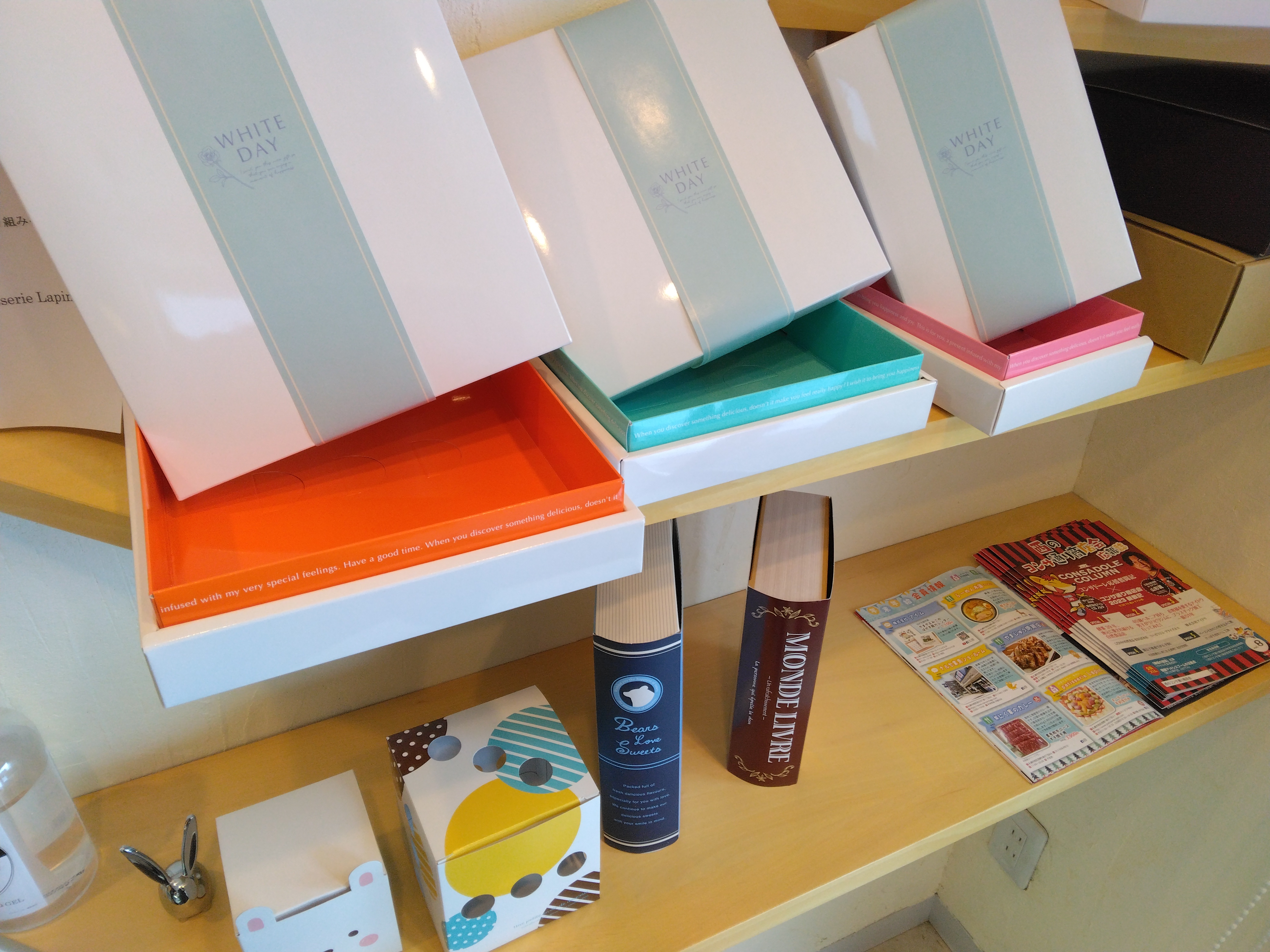 ホワイトデーの箱 2024.02.25 up ホワイトデーの箱の準備ができました! ホワイトデーらしい白の箱やかわいい箱まであります もちろんいつもの箱でも可能です ラパンのゆきしょこらをホワイトデーにいかがでしょうか ご予約お待ちしております! info@patisserie-lapin.com 新しい風味もでる予定です!